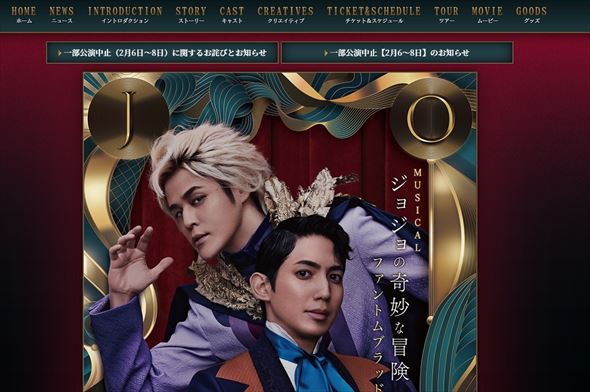 荒木飛呂彦氏の人気漫画がミュージカル化される話題の舞台。主人公ジョナサン・ジョースター役を松下優也と有澤樟太郎、宿敵ディオ・ブランドー役を宮野真守が演じる。