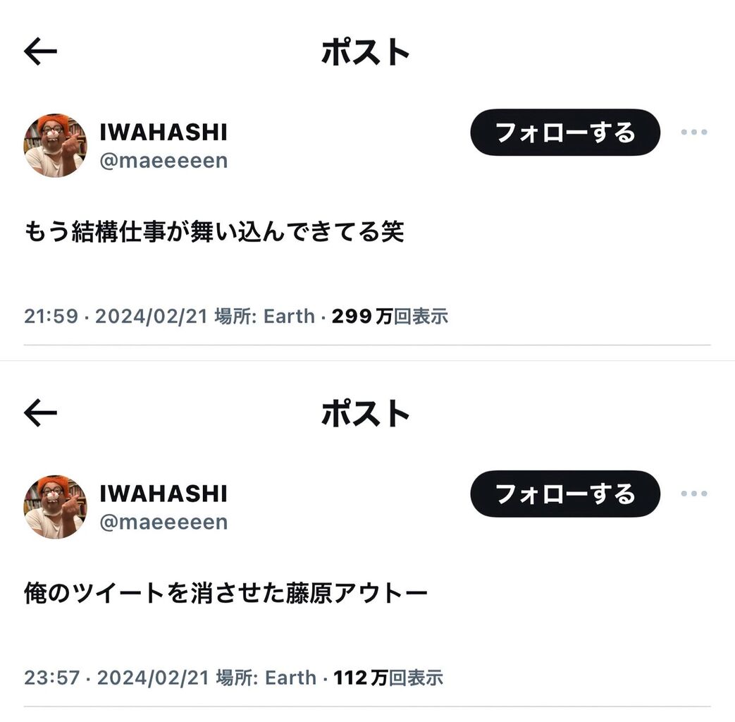 1月10日放送のABCテレビ「これ余談なんですけど…」(水曜後11・17)内で昨年に離婚したことを明らかにした岩橋。その後の「先輩に綺麗な女の子連れてったなぁ まぁ上納か笑」などといった、さまざまなXへの“過激”投稿が注目を集めていた。