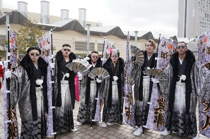 1月12日、北九州市では「二十歳の記念式典」が開かれた。会場となった西日本総合展示場周辺には、今年もド派手な衣装で着飾った若者たちが数多く集まった。