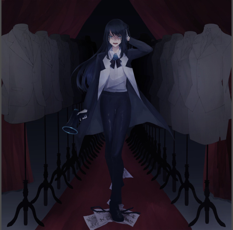 前髪を流して顔の左半分が隠れるようにしているが、左目の上と左ほおに大きな絆創膏を張っていた。